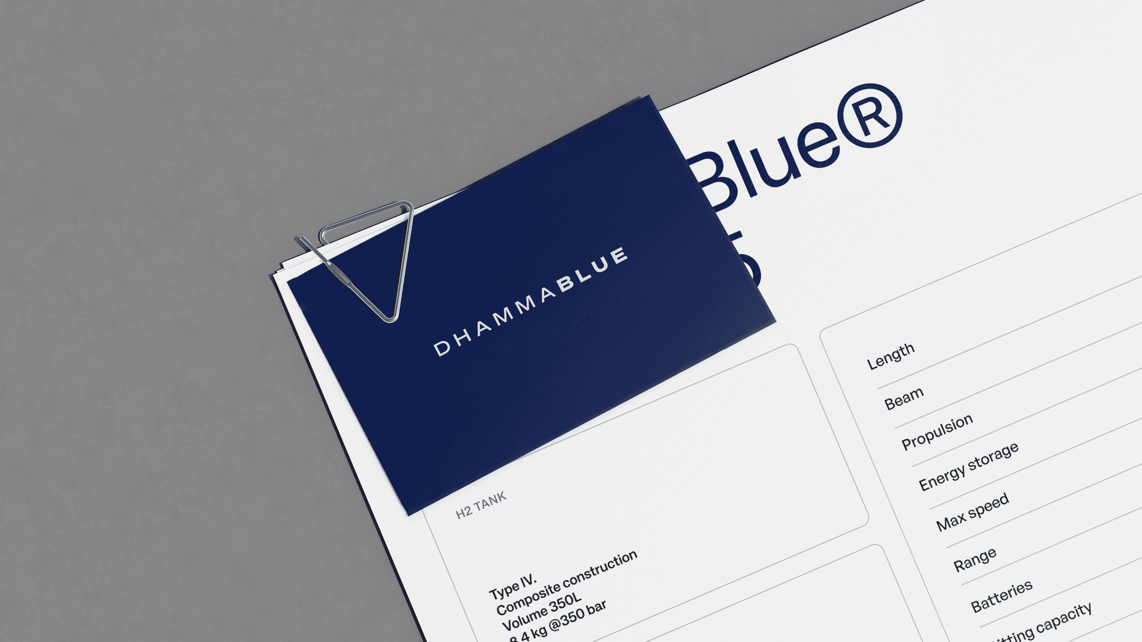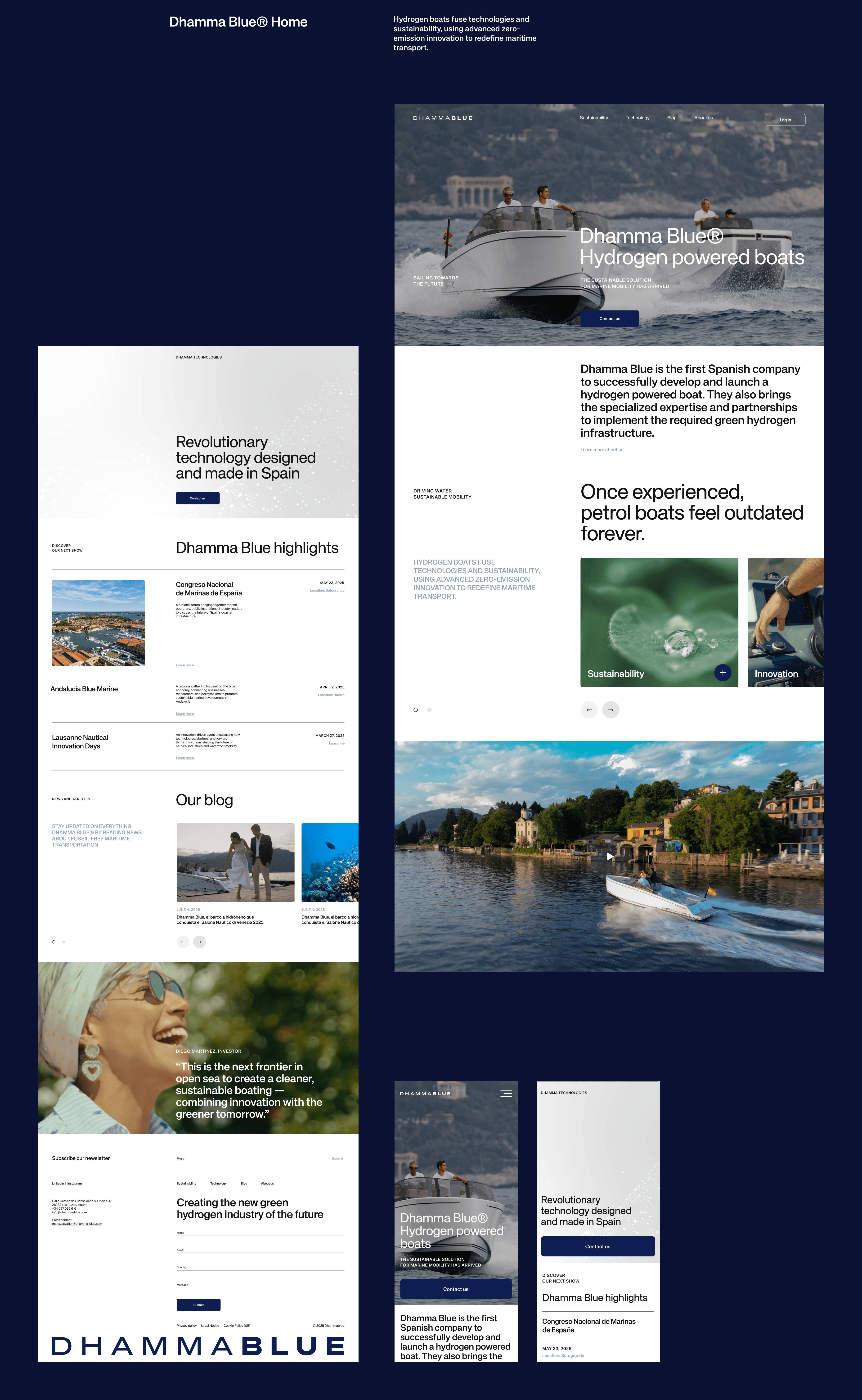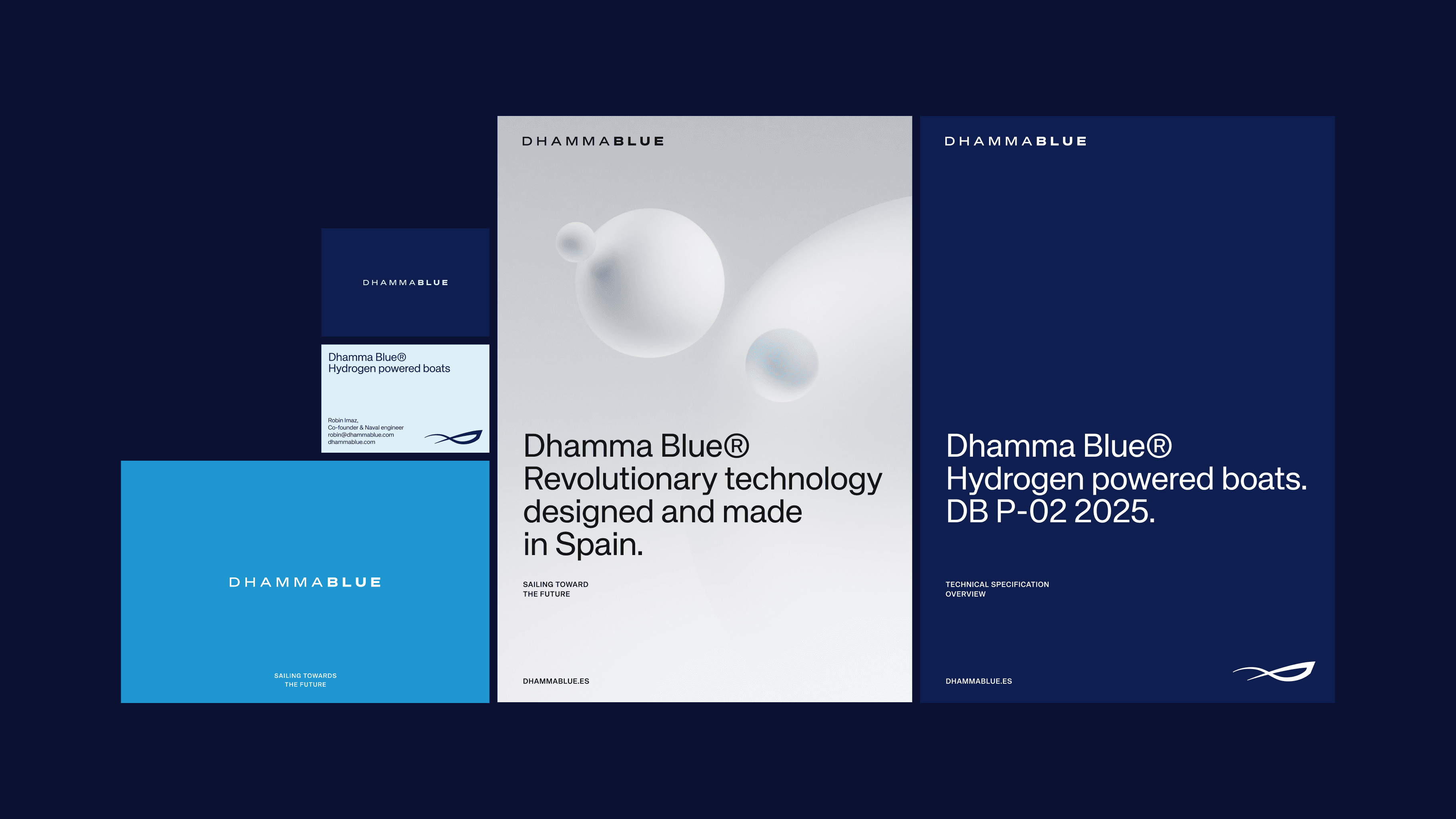 Dhamma Blue is a pioneering project in sustainable maritime mobility based on hydrogen technology. Our work consisted of building a brand language capable of communicating technological innovation, a vision for the future, and precision, without losing clarity or accessibility.